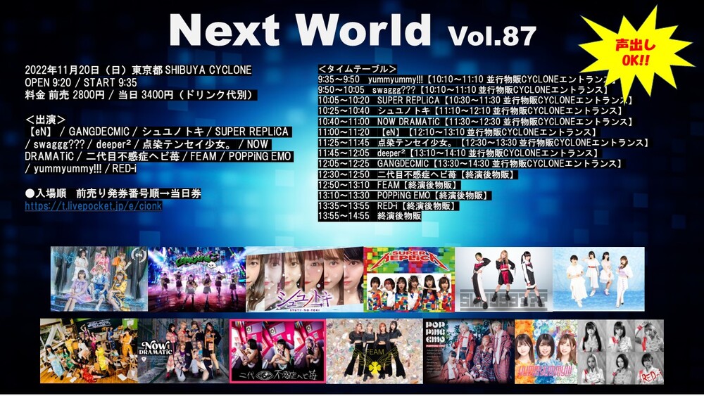 【LIVE情報】2022.11.20(Sun)Next World Vol.87