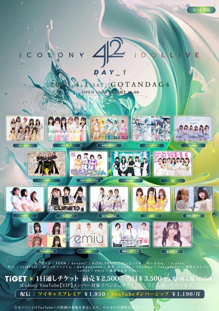 【LIVE情報】2023.4.1(Sat)ICOLONY IDOL LIVE 42 // DAY1