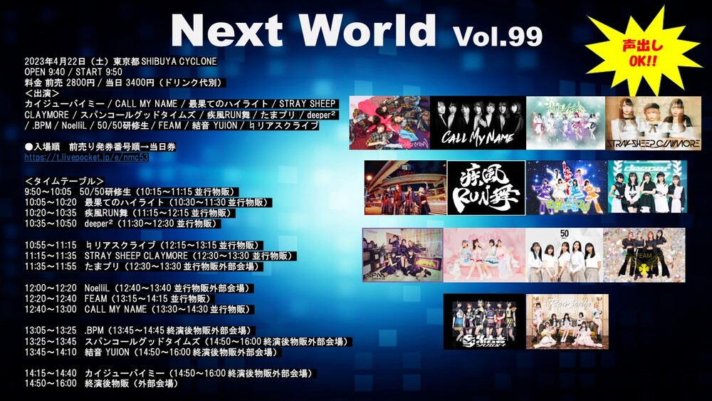 【LIVE情報】2023.4.22(Sat)Next World Vol.99