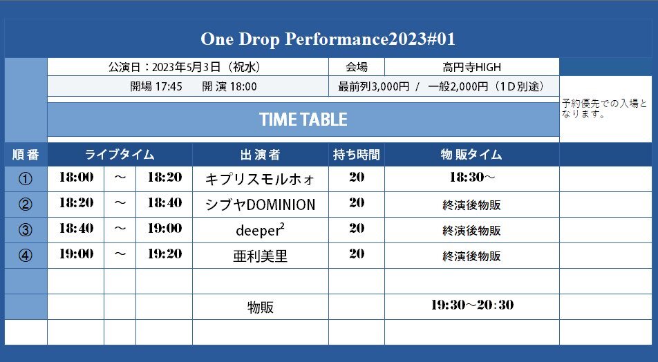 【LIVE情報】2023.5.3(Wed)One Drop Performance2023#01