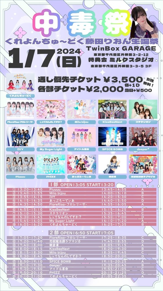 【LIVE情報】2024.1.7(Sun)中毒祭くれよんちゅ~どく 藤田りおん生誕祭 2部